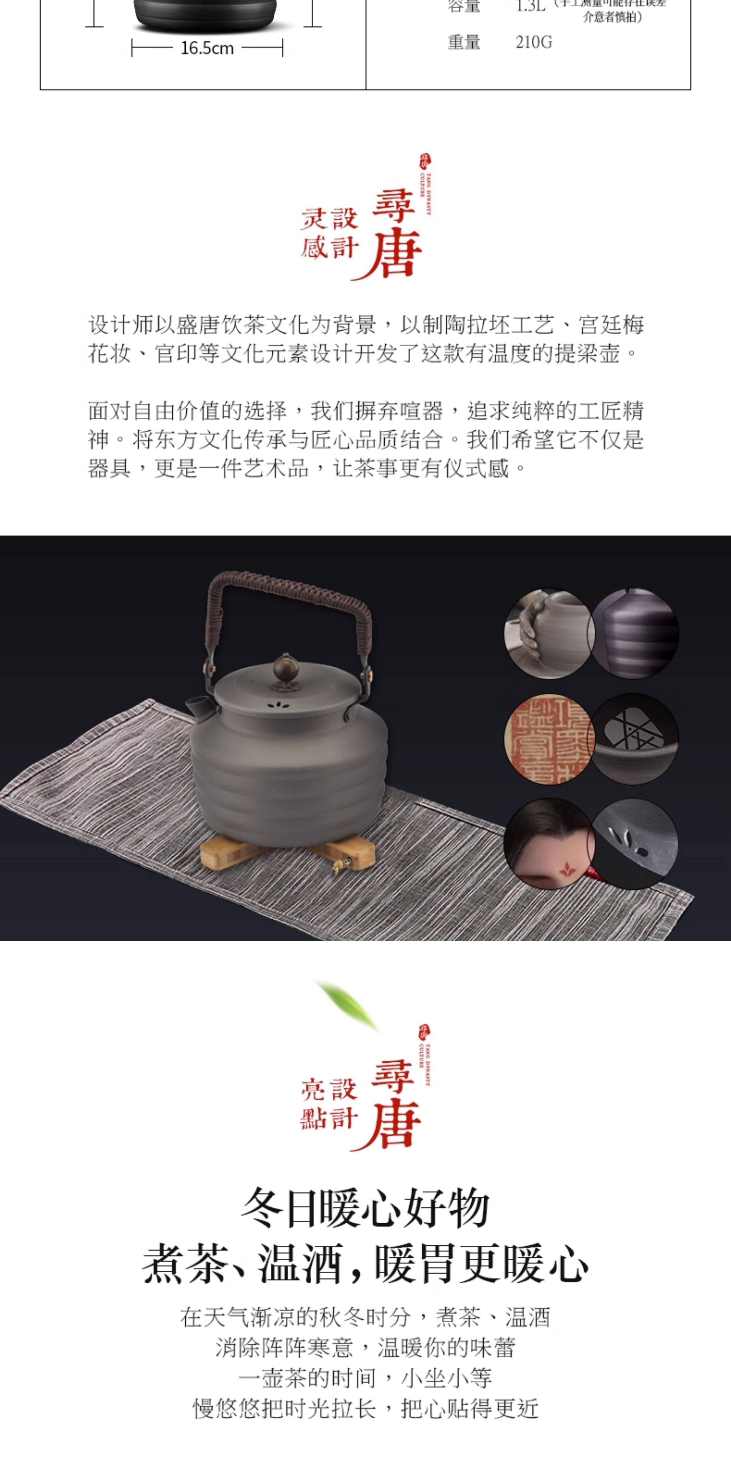 爱路客1.3L寻唐水壶便携折叠功夫茶壶户外水壶家用泡茶壶烧水壶