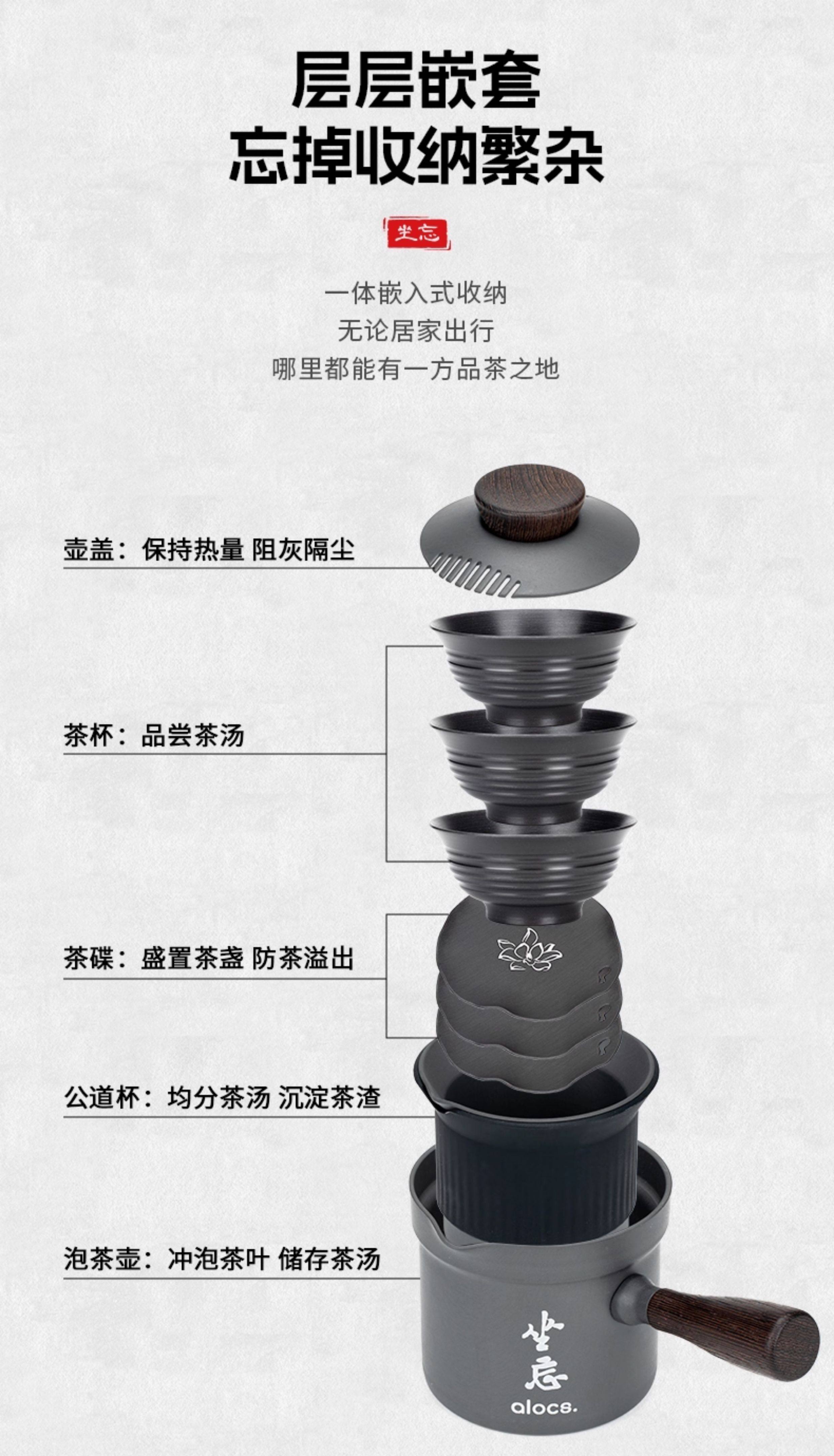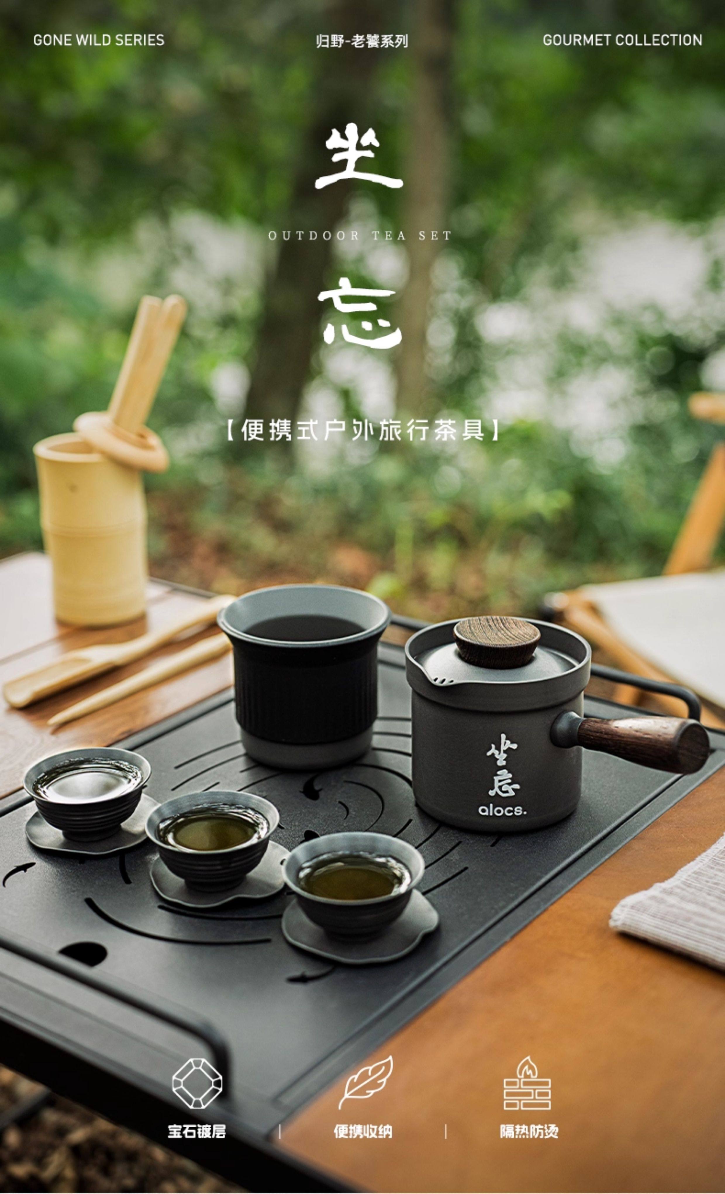 爱路客坐忘茶具套装旅行便携包二壶三杯家用户外简约随身功夫茶具