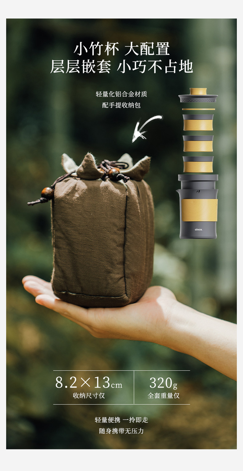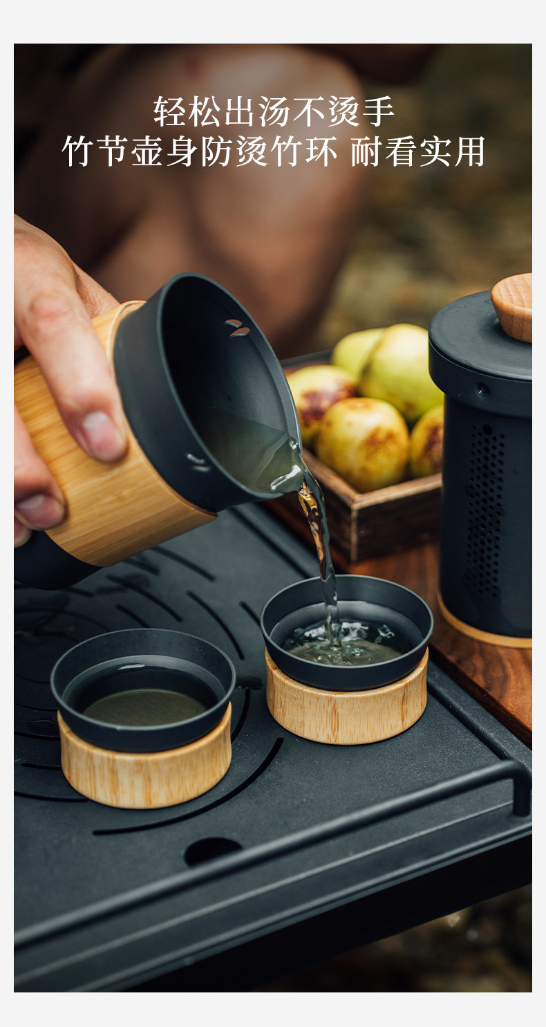 「小竹杯」爱路客竹影户外旅行茶具套装便携式一人快客杯一壶三杯